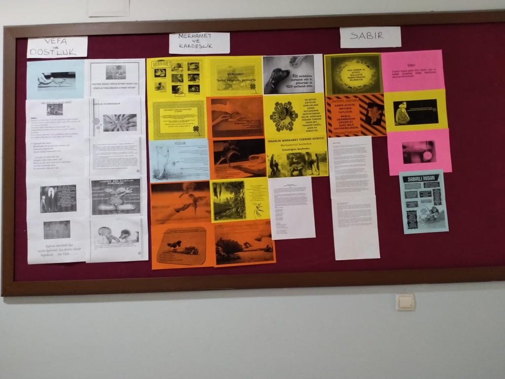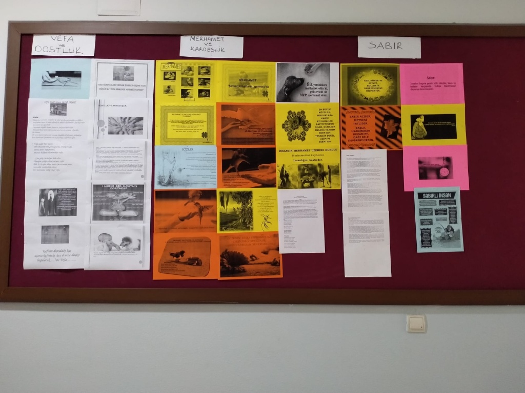 Mayıs ayı değerlerimiz olan vefa, dostluk, sabır ve merhamet ilgili defterlerimizi tuttuk, okul panomuzu hazırladık, öğrencilerimize kısa filmlerimizi izlettik, ayın öğrencisini seçtik ve veli broşür ve mektuplarımızı öğrencilerimiz aracılığıyla velilerimize gönderdik...